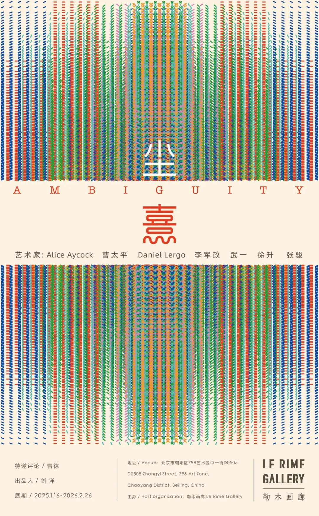 The seven artists featured in AMBIGUITY share a highly rational, process-oriented approach centered on materiality. They strive to transform intangible energies, memories, physical laws, or cognitive processes into tangible artistic forms that engage multiple senses, merging conceptual rigor with sensory experience.Alice Aycock focuses on the transformation of energy, motion, and structure in space. Her large-scale sculptures materialize invisible forces—such as wind, vortices, or mechanical motion—into dynamic forms that give physical presence to abstract physical processes. Her works often blur the boundaries between architecture and sculpture, incorporating labyrinthine or tower-like structures that invite physical engagement and psychological participation, prioritizing embodied experience over mere visual observation. Aycock draws from the history of science, cybernetics, and philosophy, translating theoretical concepts into visual language. Industrial materials and architectural elements in her works serve as carriers of historical memory and scientific metaphor, rendering complex thought processes in tangible form.Cao Taiping’s paintings extract non-figurative elements from rural life and labor—such as drifting smoke, flowing air, or traces of upturned soil—and elevate them into foundational visual motifs. While these fragments of agrarian life carry an earthy warmth, the artist avoids nostalgic representation. Instead, he overlays multiple formal strategies to integrate sensory memory into a disciplined abstract language. The resulting visual field feels both familiar and alien, reflecting the artist’s complex relationship with cultural identity in an increasingly urbanized reality.Daniel Lergo centers his practice on the materiality of pigment. Working often with a single color, he explores its full chromatic range—from deep brown to fiery red or bright green to ink-black—by varying density and layering over different grounds. Lergo treats pigment as a physical substance rather than a symbolic vehicle, generating rich textural variation within a minimalist palette. His works frequently incorporate concepts from astronomy and physics, hovering between pure form and the evocation of natural phenomena. For example, his series Redshiftuses progressively larger canvases to mimic cosmic expansion, while metal works employ oxidation to reveal latent chemical potential. He treats the painting ground as an “optical interface,” where fluorescent underlayers actively shape color through complementary or transmissive effects. The presentation of his works often incorporates theatrical spatial installation qualities.Li Junzheng operates within the tradition of abstract painting, merging the visual fields of monochrome or Color Field painting with the tactile presence of linear relief. By repeatedly layering acrylic and incising it with blades, he creates three-dimensional engraved structures within a unified color plane. These incised “lines” are physical traces, not drawn illusions, intertwining the visuality of painting with the haptic quality of sculpture. Despite the labor-intensive surface—dense with brushstrokes and intricate cuts—the repetitive structure conveys a simplicity beneath apparent complexity.Wu Yi employs the inherent properties of materials to transform linear depiction into gradients of atmospheric ambiguity. A shift in his eyesight led him to replace controlled brushwork with raw xuan paper, which absorbs ink unevenly, yielding organic bleeds and “traces like leaking roof stains.” This method allowed him to harness controlled randomness, creating subtle dependent structures that suggest psychological interiors and exteriors.Xu Sheng’s sculpture traces an evolution from natural imagery to digital abstraction. Early works like Thousand-Layer Wavecapture the dynamics of ocean foam in foam material, retaining figurative natural metaphors. In his Dual Entryseries, he uses VR to construct forms directly in virtual space, shifting from manual shaping to digital generation. The motif of the “wave” is deconstructed into an abstract structure of conscious flow, cast in bronze as cool, fragmented geometries. This transition reflects a deeper transformation in creative media and formal language—from imitating nature to visualizing cognitive processes.Zhang Jun builds his paintings on the flat color grounds of Color Field painting, then introduces tactile textures by scraping hardened tools across the canvas. These scratches create linear structures of varying depth, breaking the uniformity of the color field and enriching color perception through subtle illusory effects. In the artist’s words, the arrangement of texture simulates the flow of natural forces—an imagined representation of the breath of the wind.This exhibition brings together artists who bridge material presence and intellectual inquiry, offering forms that are as much thought processes as they are sensory experiences.