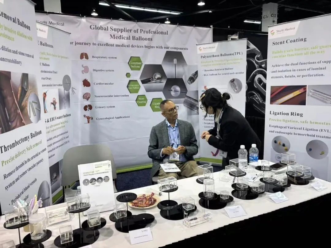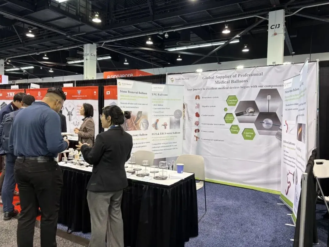 星创医疗在展会期间集中展示了消化道、神经血管介入、外周血管、心脏介入、内窥镜、消融等领域的高顺应性(半顺应性)球囊、支架覆膜等多种高分子材质产品,为客户的前沿创新提供了独一无二的产品技术支持,得到客户的热切回应与认可。
