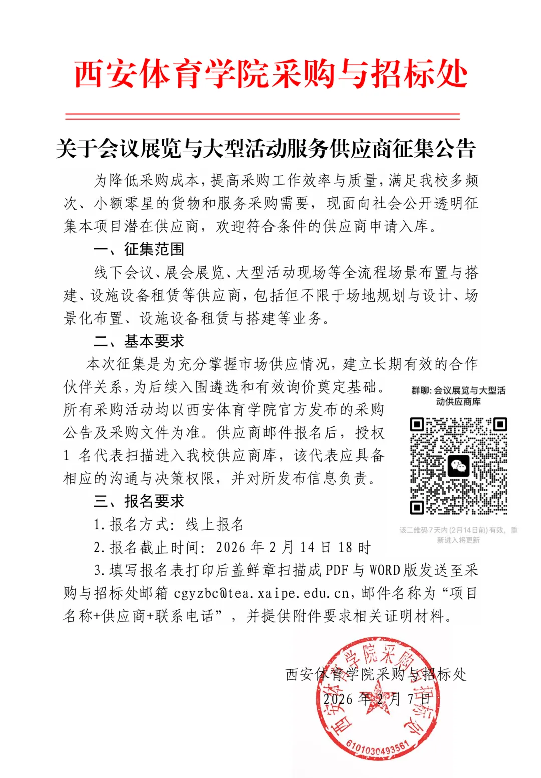 关于会议展览与大型活动服务供应商征集公告
