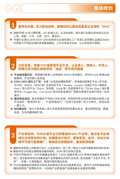 正是基于这样的历史背景与机遇。从1993年就深耕中国礼品行业B2B会展领域并早在2005获得UFI认证的励展华博,为深圳乃至整个大湾区最具潜力的跨境电商从业者和生态圈打造了专属的跨境出海盛宴:2026GGE出海博览会(暨第11届OEM/ODM源头工厂展)。