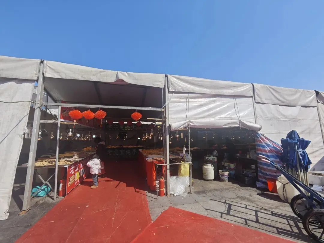 年货帐篷展销会,可谓是县城里一道独特的风景。它不够城市化,带着乡村的粗犷与朴素,由一个个帐篷相连,搭建在一片县城城区的空地上。