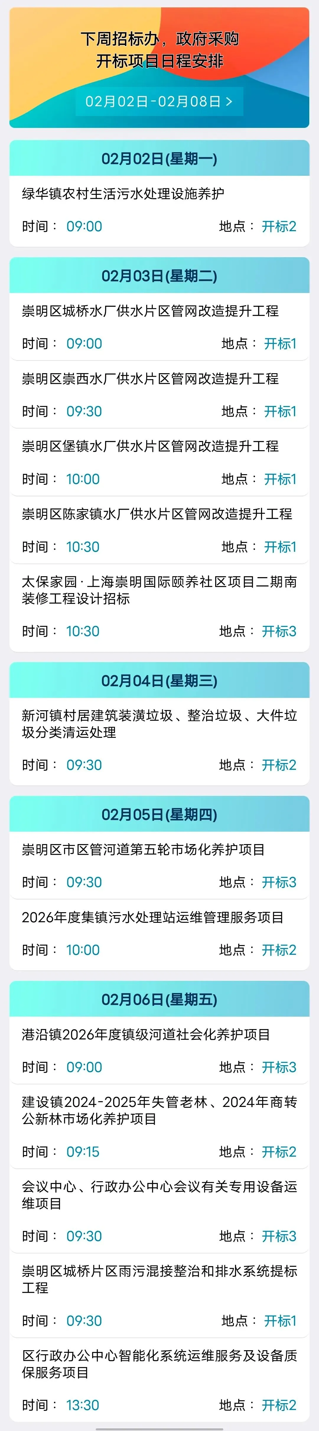 【日程安排】下周招标办、政府采购开标项目日程安排(2月2日-2月8日)