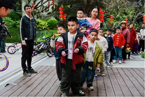 这场活动以中式园林为载体,深耕中式邻里文化,将传统民俗与邻里欢聚深度融合,串联起签到、写福、游戏、舞狮、家宴、伴手礼六大环节。它不仅让业主沉浸式体验了写春联、投壶、舞狮等传统年俗的魅力,更打破了邻里间的生疏,让亭台轩榭成为相识相知的起点。