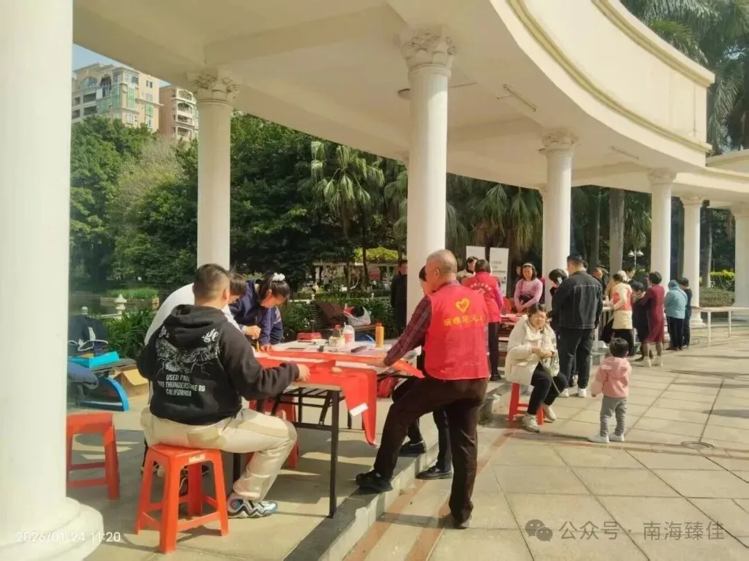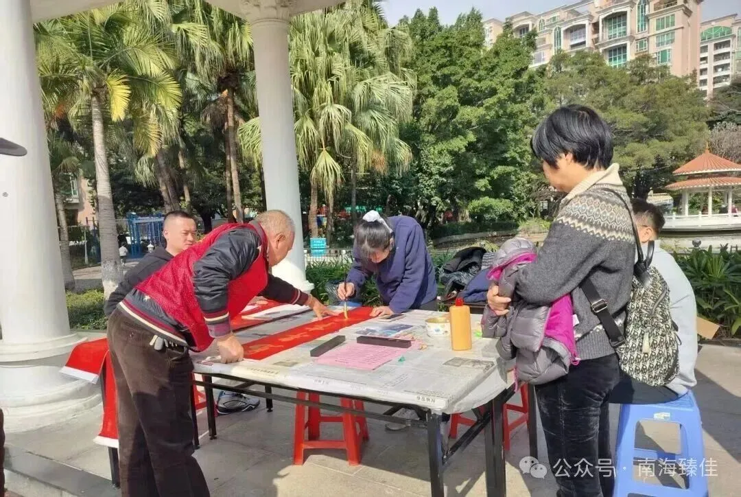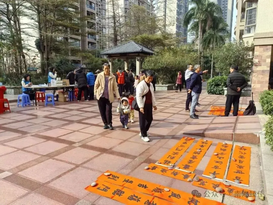 近日,佛山市南海臻佳物业丽雅苑管理处开展手写春联活动,用邻里笔墨点燃春节氛围。管理处邀请小区业主志愿队的多位热心业主,在南区和中区设立两个现场服务点,为居民现场挥笔送福。