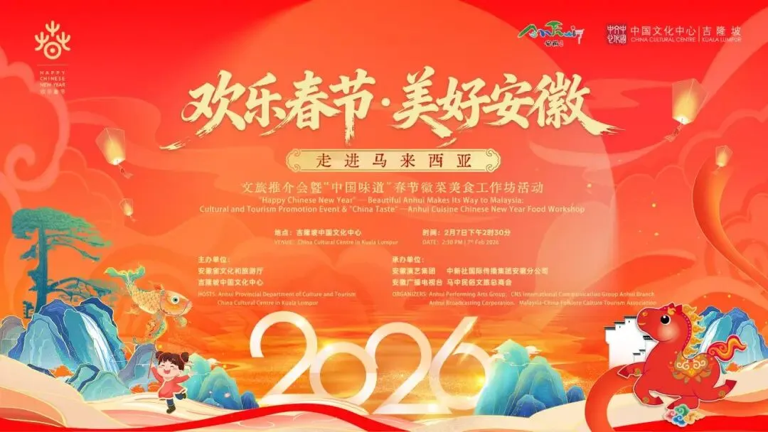 2月7日,由安徽省文化和旅游厅、吉隆坡中国文化中心共同主办的“欢乐春节·美好安徽走进马来西亚”文旅推介会暨“中国味道”春节徽菜美食工作坊活动在马来西亚吉隆坡成功举办。