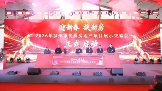 为深入贯彻落实党中央、省、市关于促进房地产市场平稳健康发展的决策部署,进一步激发住房消费潜力,推动房地产高质量发展,2月8日上午,由滨州市住房和城乡建设局、滨城区人民政府主办,滨城区住房和城乡建设局、滨州市房地产业协会承办的“迎新春·换新房”2026年滨州市优质房地产项目展示交易会在滨州市全民健康文化中心体育场南广场隆重启动。副市长张瑞杰,市政府副秘书长赵金沙,滨城区委副书记、区长李刚,市住房城乡建设局党组书记、局长朱臣出席启动仪式。