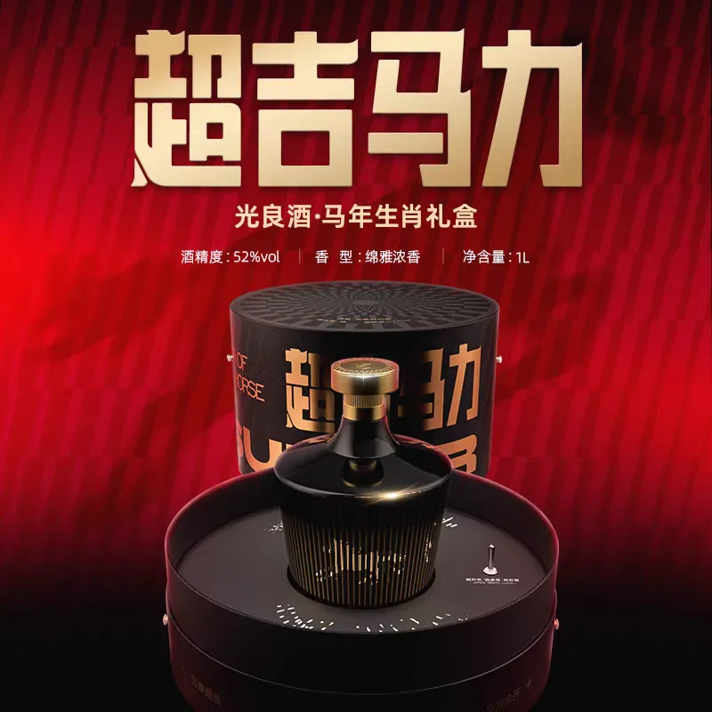 1月31日,光良酒官宣马年生肖礼盒“超吉马力”(酒精度52%vol,净含量1L)。作为一款专为丙午马年打造的高端定制产品,其主打“器以藏礼”理念,以黑金为主色调,礼盒巧妙融入F1赛事标志性“棋格纹”,采用哑油纹理和烫金工艺,在“器以藏礼”的传统文化观念下,重构东方美学的现代表达。此外,酒瓶瓶身创造性地运用栅格动画的原理,拨动底座的开关,站至稍远处,一匹栩栩如生的骏马跃然眼前,驰骋不息。