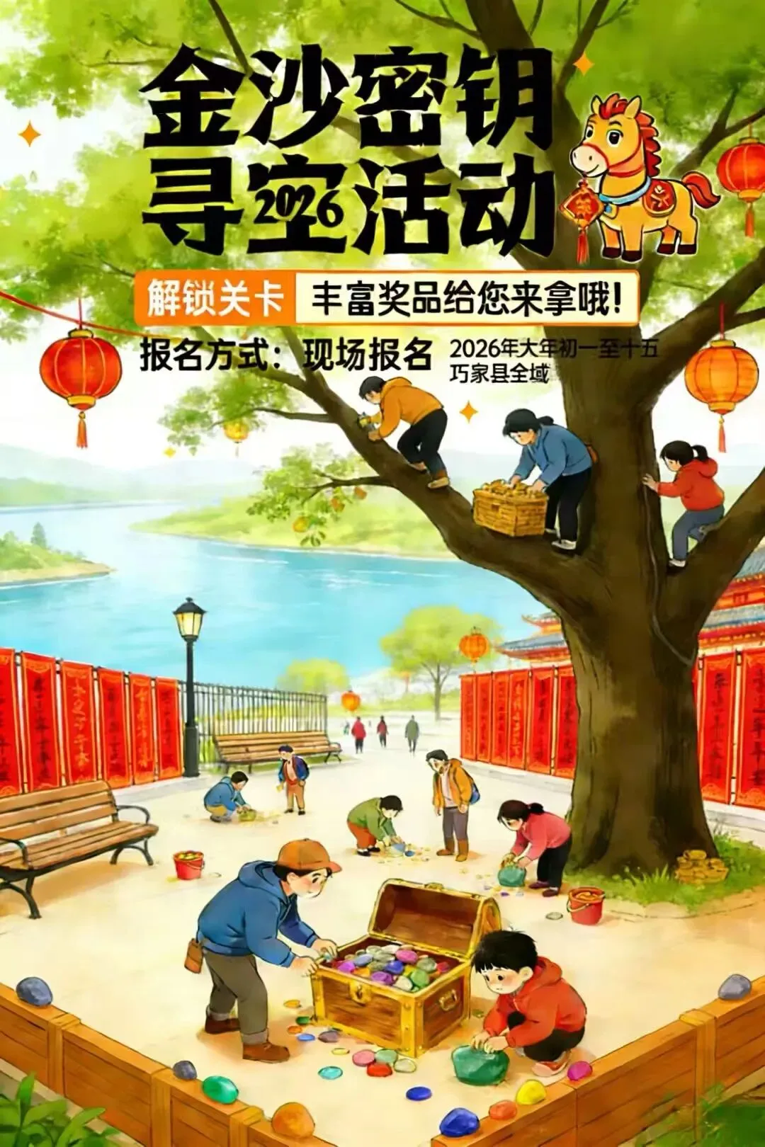 亮点:县文联、大象文旅公司设置关卡和任务开展巧家县金沙密钥寻宝打卡活动,邀请现场群众、游客免费参与,完成任务者可现场获得礼品哦。寻宝线索:巧家县城内滨江公园,湖畔路,金沙酒店,仅限前20名仅限前20名参与。