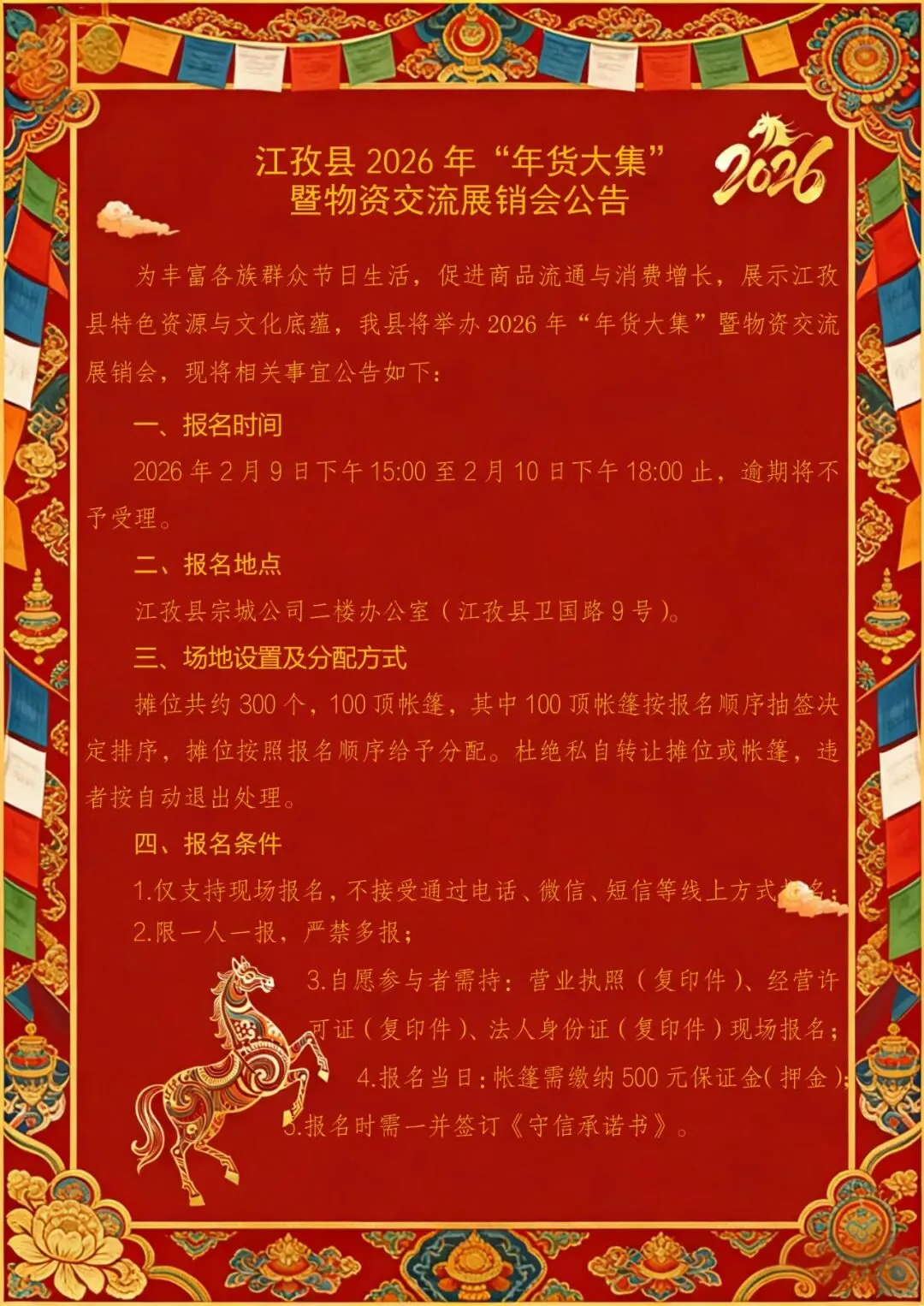 江孜县2026年“年货大集”暨物资交流展销会公告(双语)