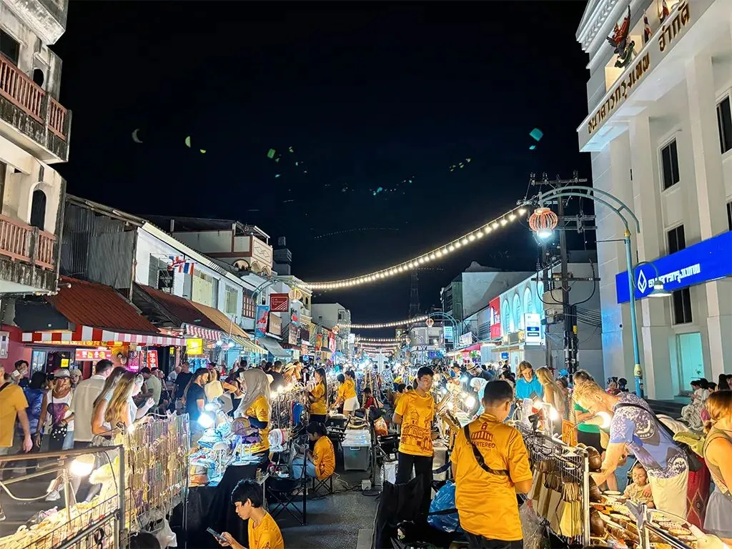 复古风情的文化夜市,每周日晚上,普吉镇老城区的塔朗路 会封路举行夜市,老建筑被彩灯装饰得如梦似幻,殖民风格的骑楼与传统泰式摊位相得益彰。这里有很多当地手工艺品、复古饰品、街头小吃,还有街头艺人表演传统音乐和舞蹈,充满文化气息。