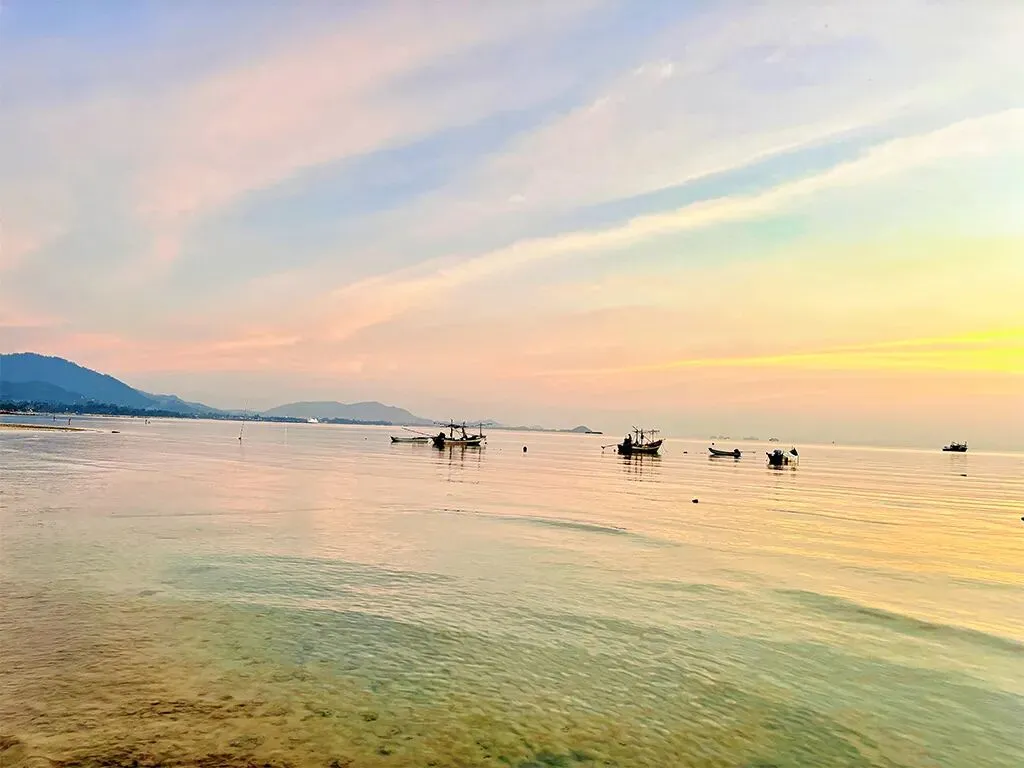 查汶海滩位于苏梅岛东海岸,是一个绵延4-7 公里的新月型海滩,是苏梅岛开发最完善、最受欢迎的海滩。这里拥有细腻如粉的白沙和层次分明的蓝绿色海水(近岸薄荷绿,远海蒂芙尼蓝),海水清澈温暖,能见度高,非常适合游泳和浮潜 。