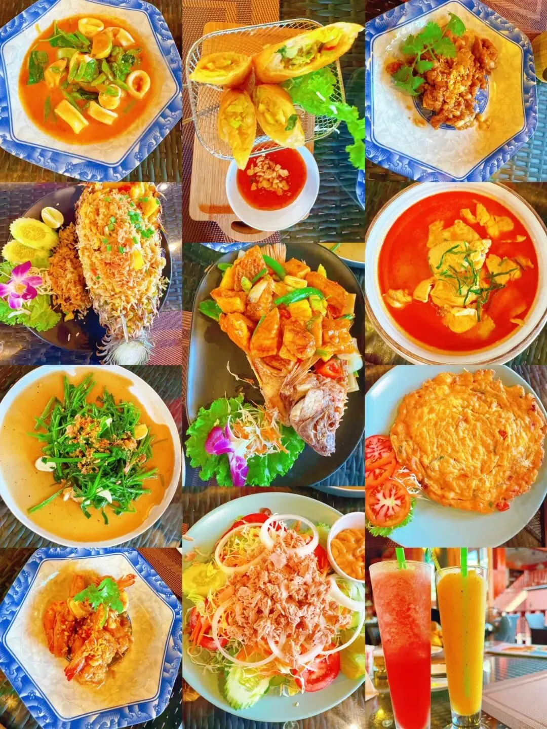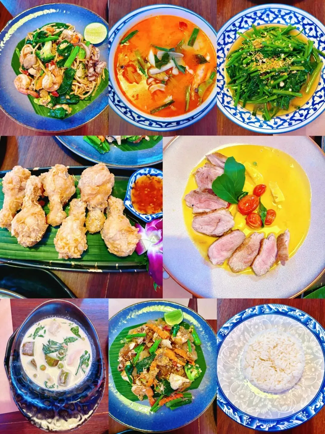 冬阴功汤、泰式炒河粉、火山排骨、泰式春卷、芒果糯米饭、泰式咖喱、青木瓜沙拉等