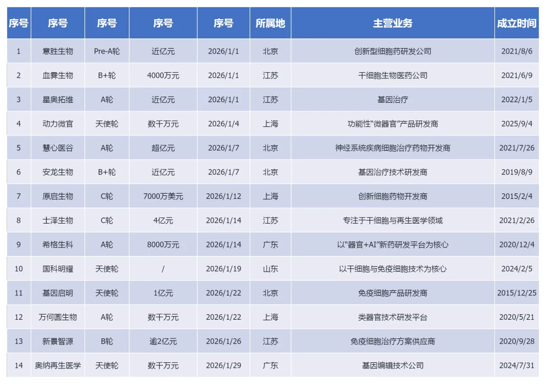1月1日,苏州血霁生物科技有限公司完成4000万元B+轮融资。