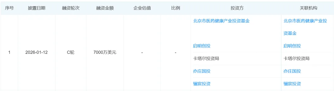 1月12日,原启生物科技(上海)有限责任公司完成7000万美元C轮融资。