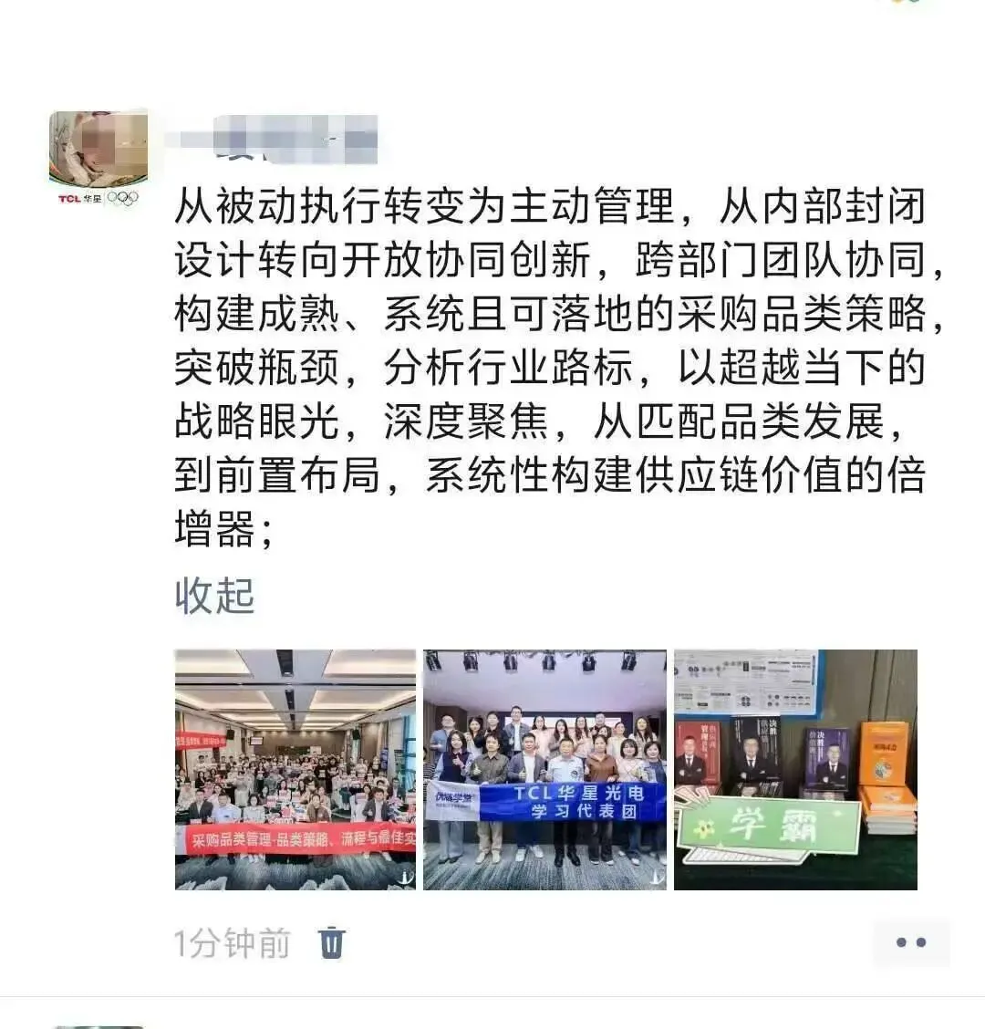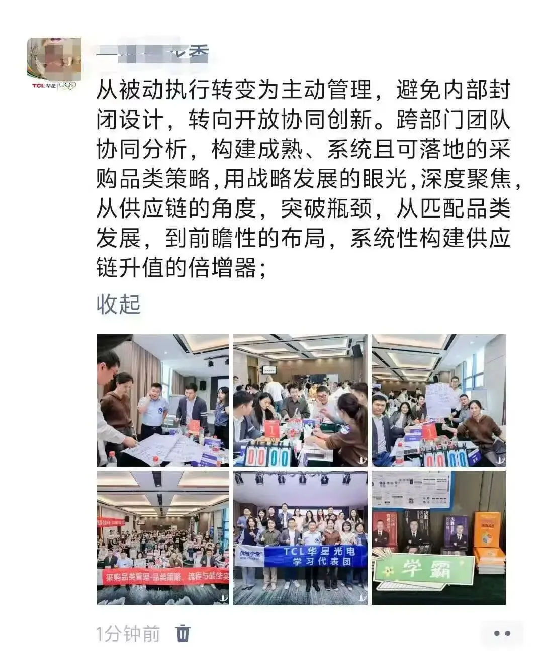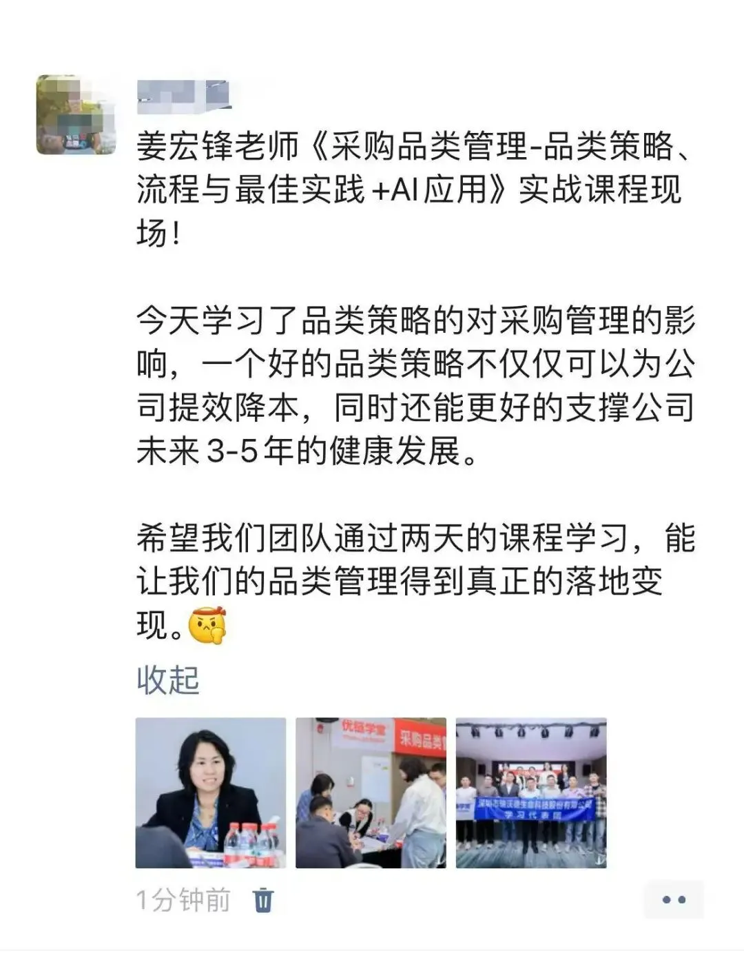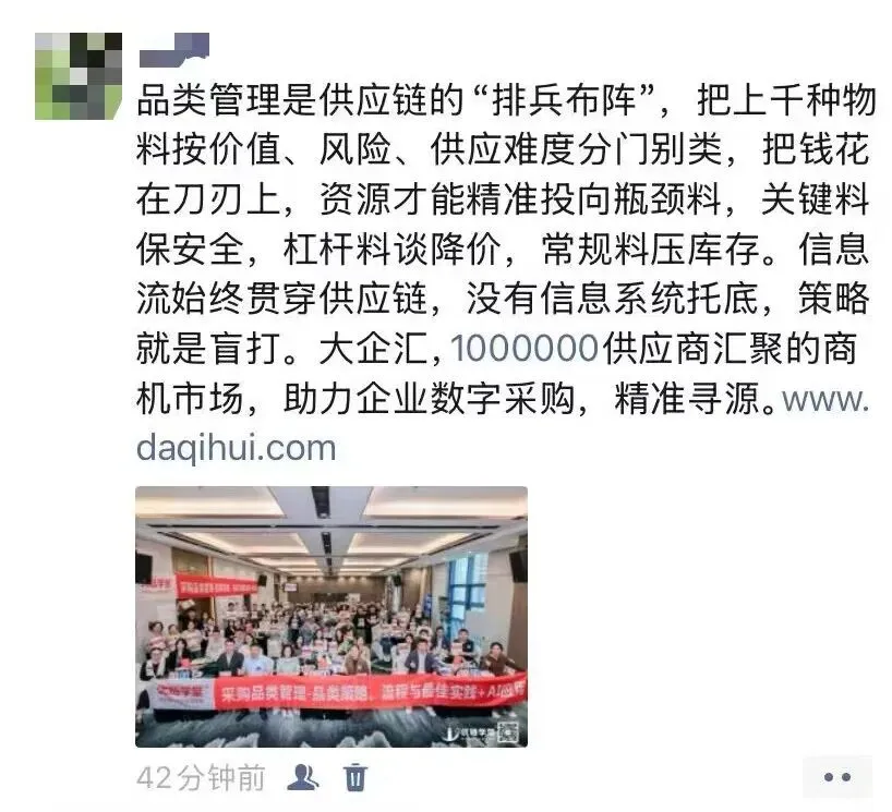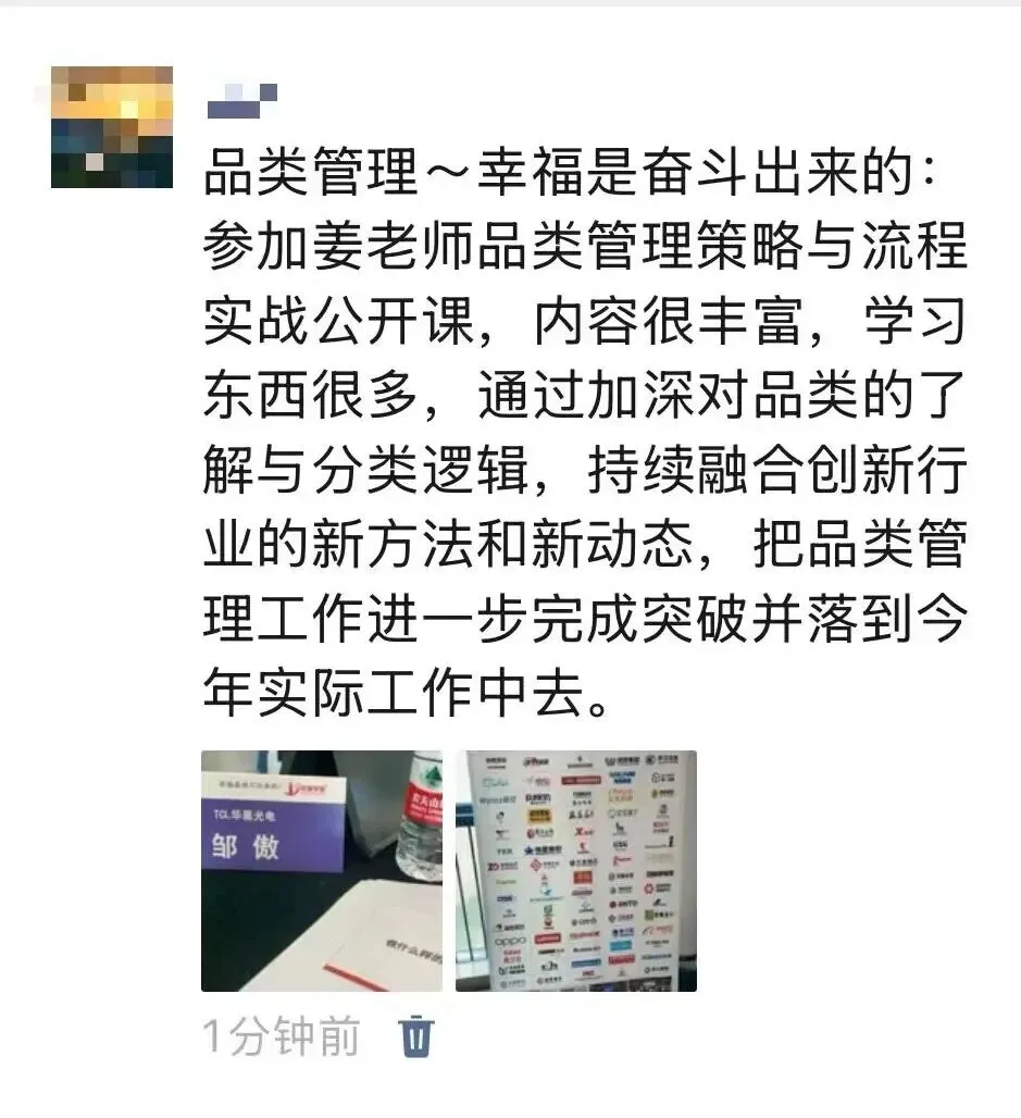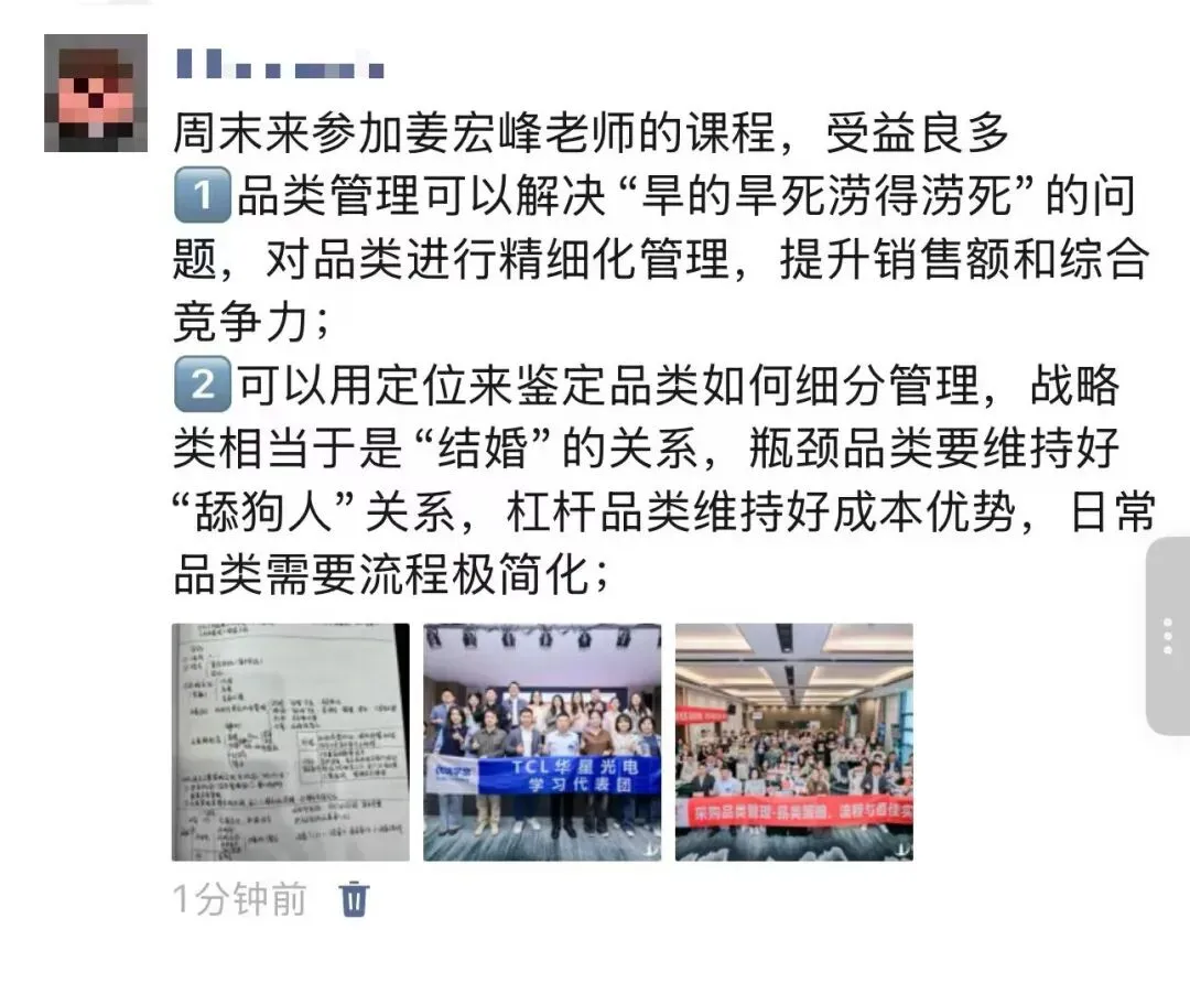 姜老师通过持续不断地深入企业辅导,落地提炼出来一套行之有效的采购品类管理体系、策略和方法,辅导企业每年做品类报告、品类策略大赛、品类管理案例集,深度融入企业的组织基因中。不仅帮企业提升了采购团队的专业度,解决了跨部门的协同问题,更帮企业实现了精准降本增效的难题。