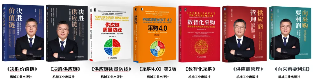 • 7本供应链畅销书:《决胜供应链》、《采购4.0》、《供应商管理》、《向采购要利润》等作者