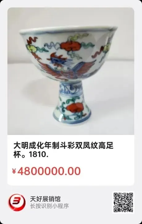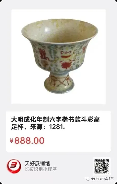 大明成化年制六字楷书款斗彩高足杯,高10cm足径3cm,来源:1281.
