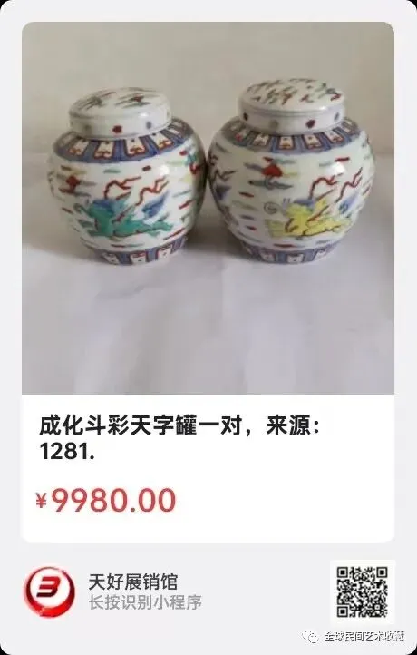 成化斗彩天字罐一对,高14厘米足径9厘米,来源:1281.