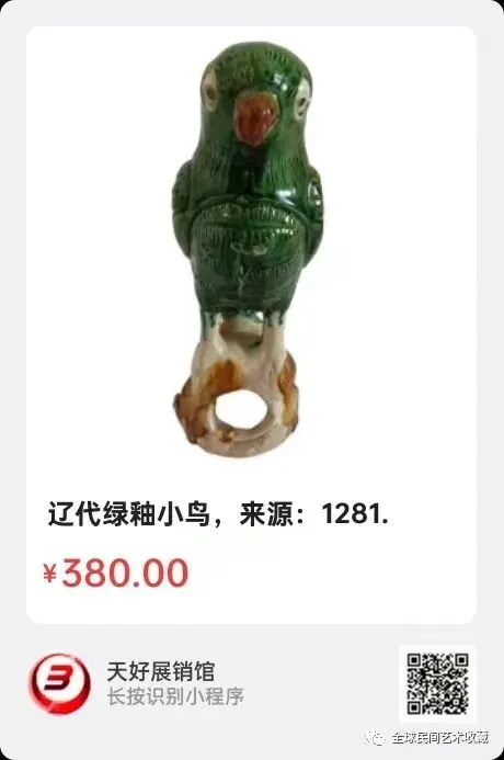 辽代绿釉小鸟,高26cm,足径8cm,来源:1281.