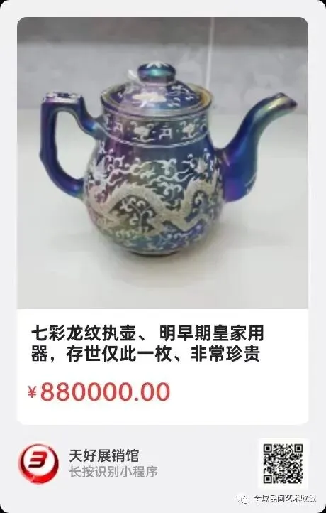 七彩龙纹执壶、 高13公分、明早期皇家用器,存世仅此一枚、非常珍贵。来源:1035.