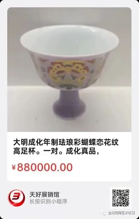 大明成化年制珐琅彩蝴蝶恋花纹高足杯。高十公分。一对。成化真品,来源:1035.