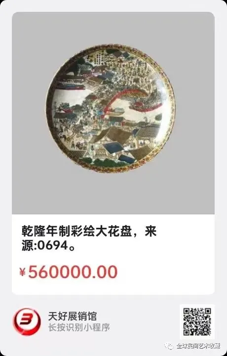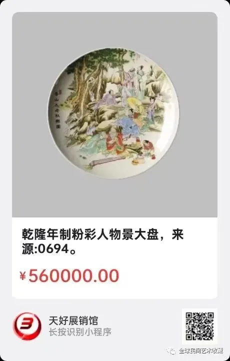 乾隆年制粉彩人物景大盘,口径:34cm,底径:21cm,盘高:4.5cm。来源:0694。