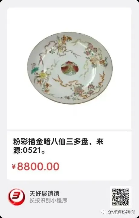 粉彩描金暗八仙三多盘,直径23cm,高4cm,来源:0521。