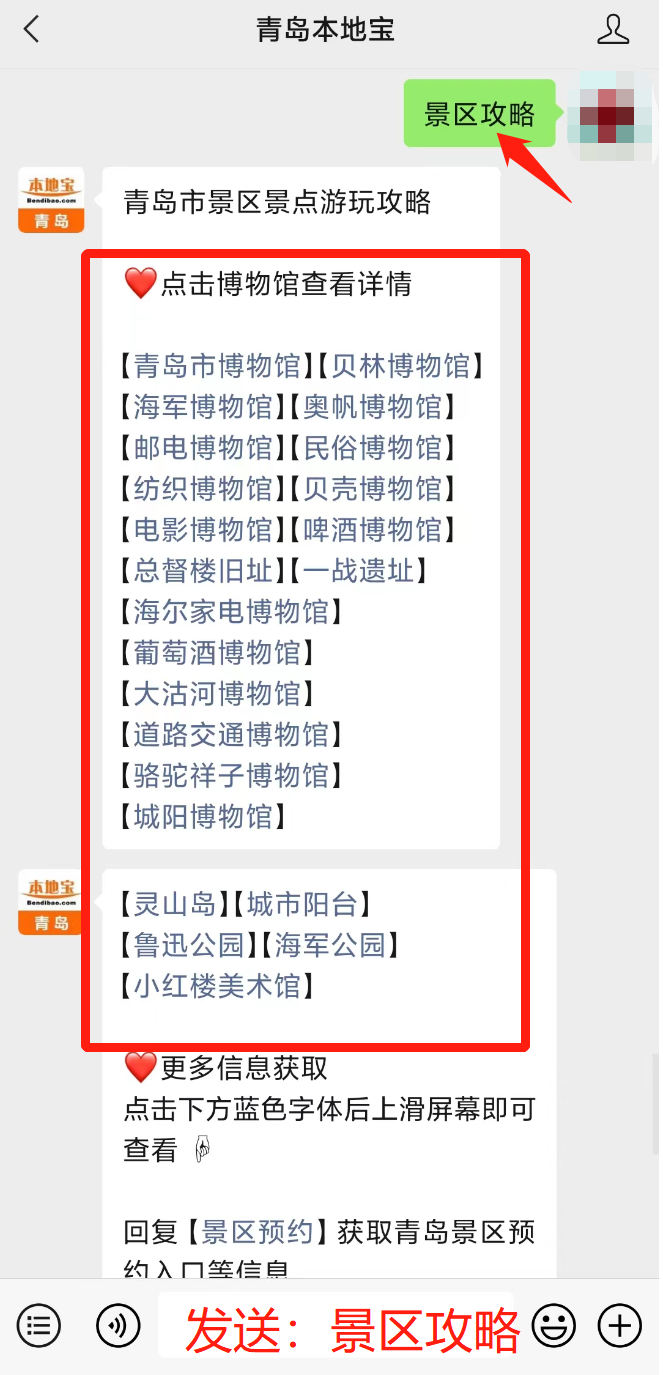 回复:景区攻略,获取青岛景区游玩攻略