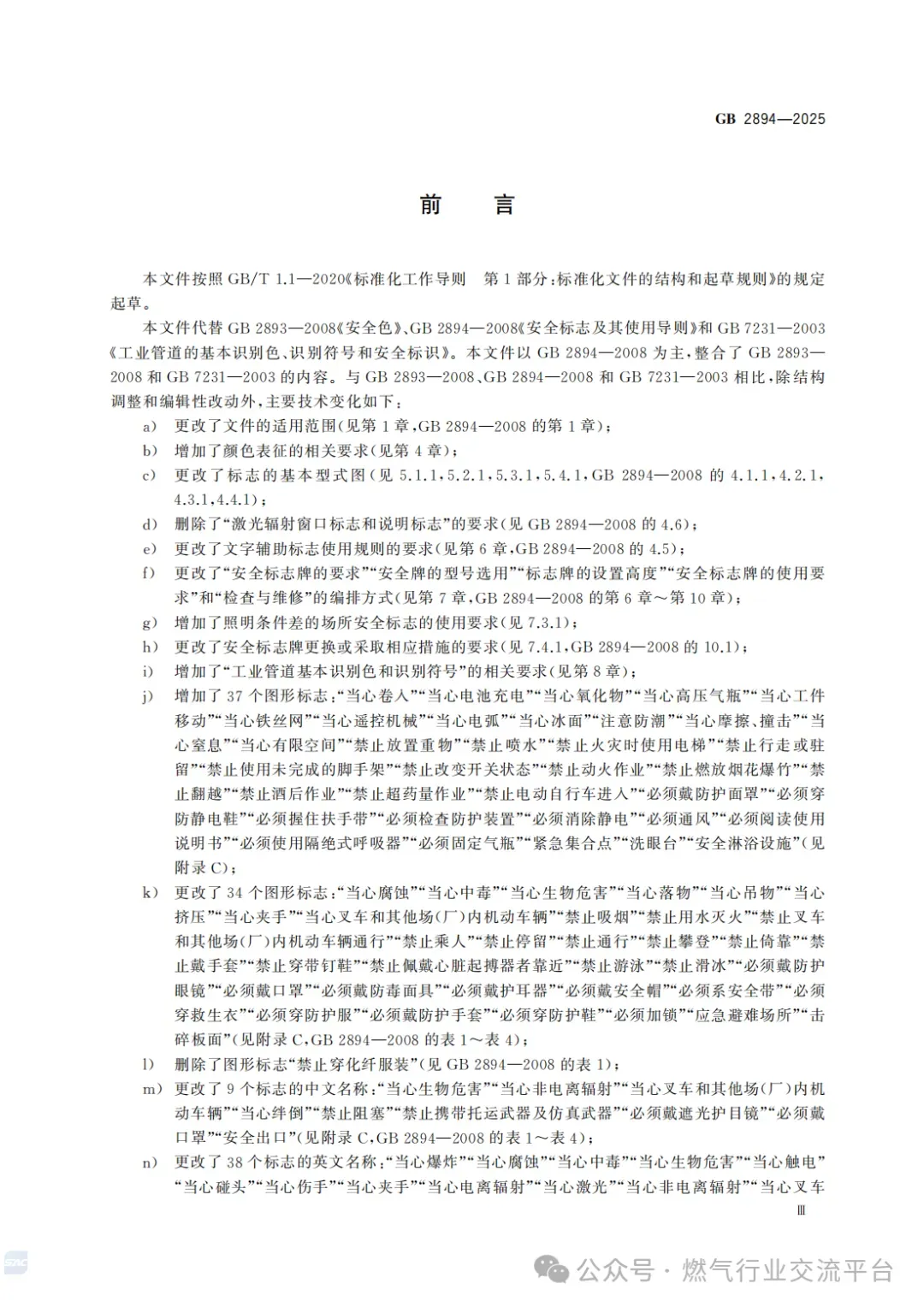 2025年5月30日,国家市场监督管理总局和国家标准化管理委员会联合发布了强制性国家标准GB 2894-2025《安全色和安全标志》,该标准将于2026年3月1日正式实施。GB 2894-2025将全面替代已经实施多年的GB 2893-2008《安全色》、GB 2894-2008《安全标志及其使用导则》和GB 7231-2003《工业管道的基本识别色、识别符号和安全标识》三项标准,实现了对安全标志相关规范的全面整合。