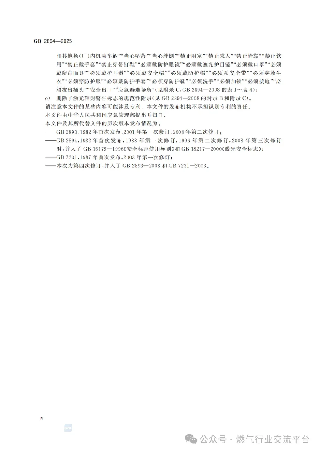 4.删除内容 删除了“禁止穿化纤服装”的图形标志以及激光辐射警告标志的规范性附录。 可能与当前实际风险关联性不强或已被其他要求涵盖。