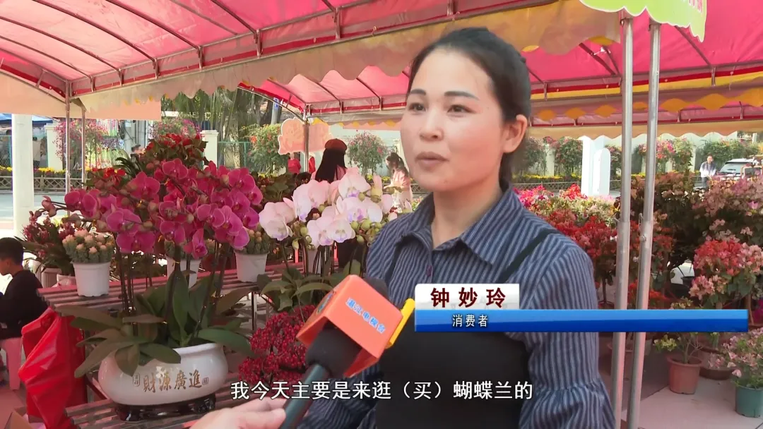 我今天主要是来逛(买)蝴蝶兰的,我觉得蝴蝶兰的寓意比较好,过年送人最稳妥。它颜值又高,容易养活。(新屋仔村)是本地源头,款式多、样式多,颜色选择也比较多,售后最稳妥。
