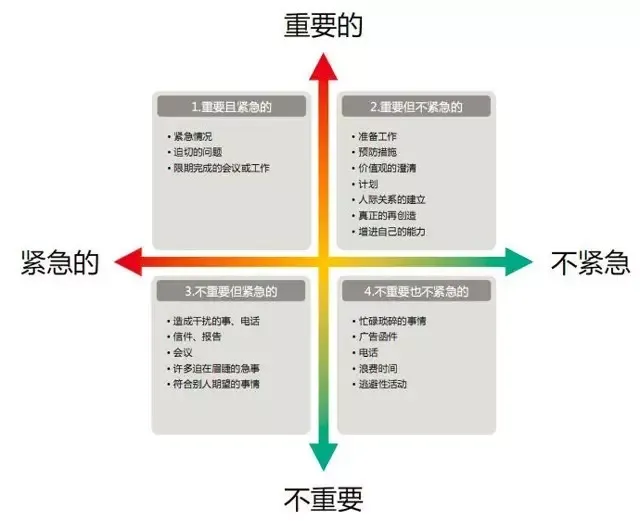 我们总是不能静下心来去做最该做的事,或者是被那些看似急迫的事所蒙蔽人们的惯常地习惯是按照事情的“缓急程度”决定行事的优先次序,而不是首先衡量事情的“重要程度”。