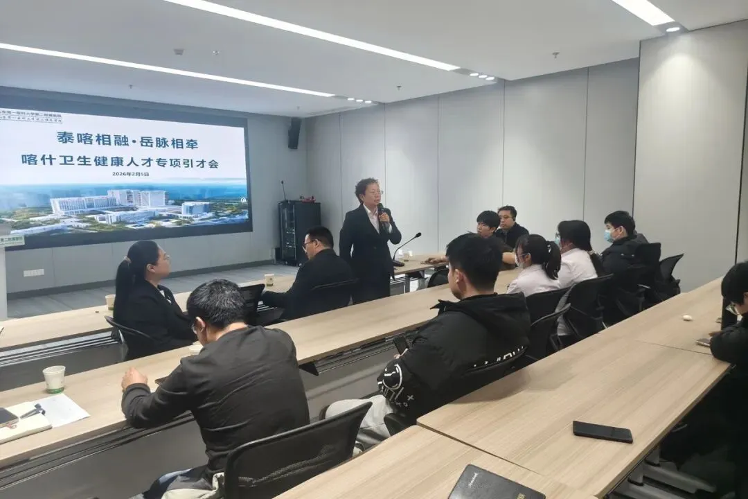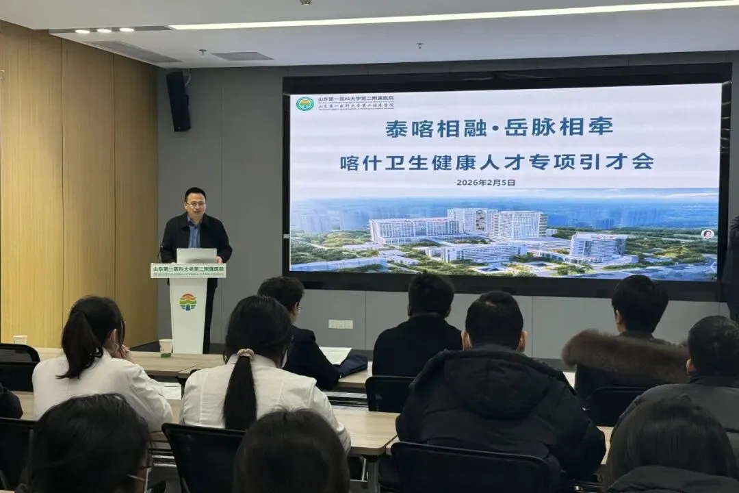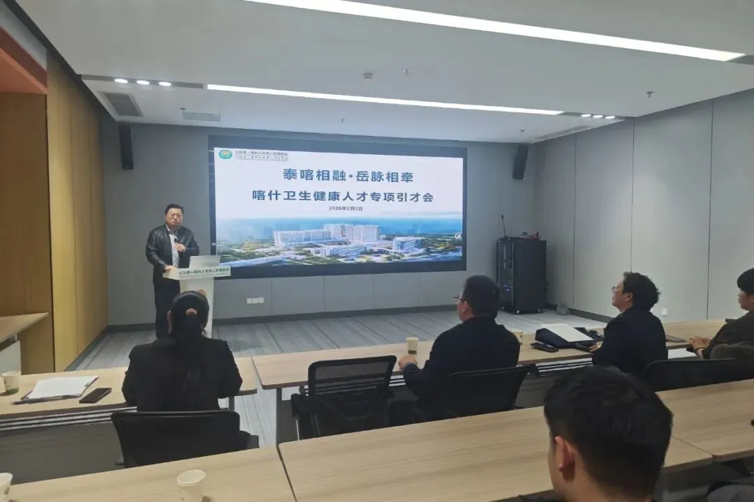 2月5日下午,新疆喀什地区卫生健康委员会携下属医疗卫生机构来我院开展专项人才招聘推介会。党委委员、副院长刘伟及研究生管理部、住培办等相关负责人参加会议,以“泰喀相融・岳脉相牵”为引领,深化东西部医疗协作,搭建人才双向奔赴桥梁。