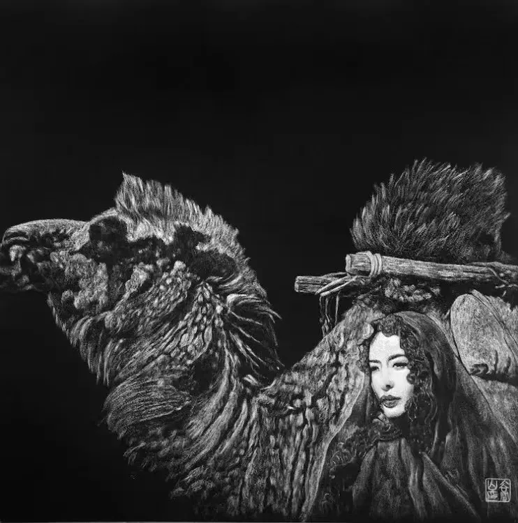 谷宝山《女人与骆驼》