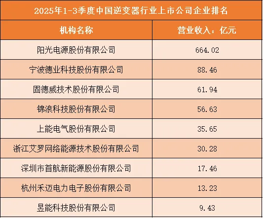 一、2025年1-3季度中国逆变器行业上市公司企业排名分析