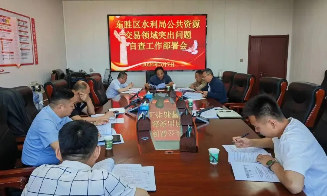 5月7日,东胜区水利局召开公共资源交易领域突出问题自查工作部署会,会议由党组书记、局长主持,局领导班子、相关科室及二级单位负责人参加了会议。