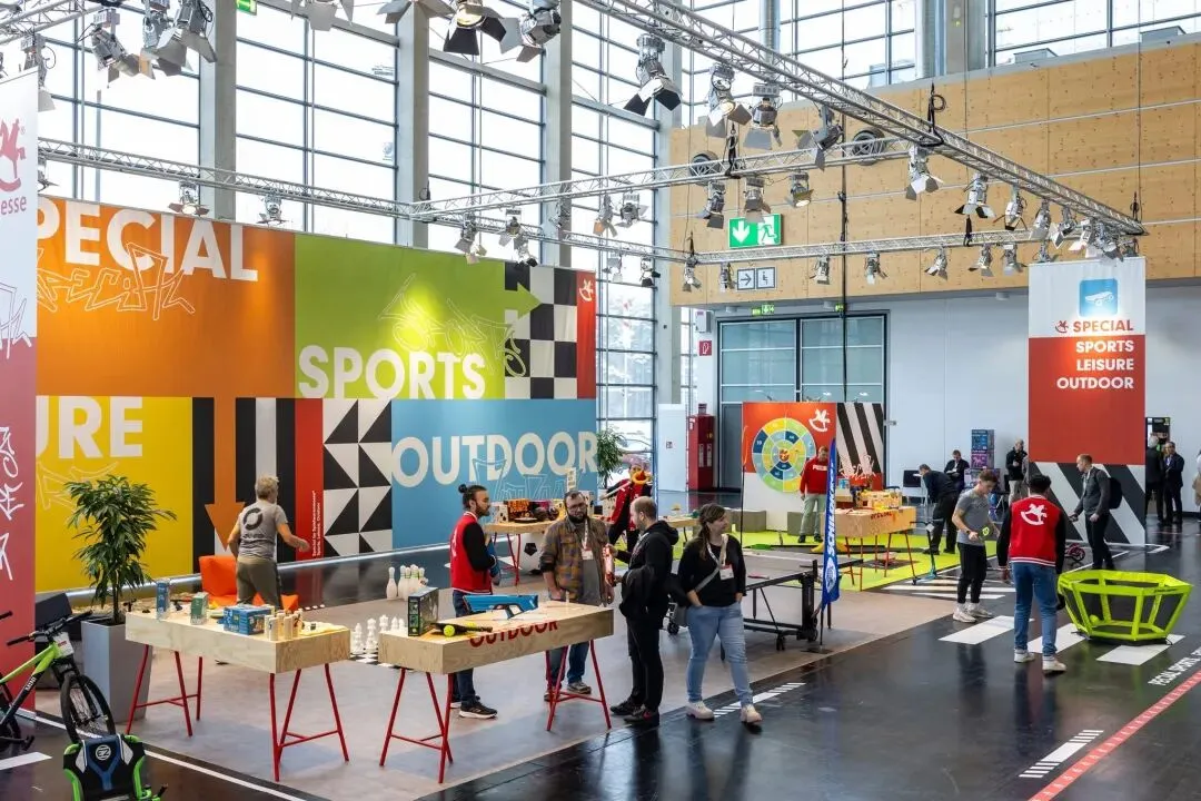 StartupArea(初创专区)汇集了来自16个国家的44家创新企业,其中22家为德国新秀,展示前沿创意与未来产品,如AI互动玩具与可持续材料应用。该区域与New Product Gallery(新品画廊)相邻,后者集中展出超过130款创新产品,供观众近距离探索。Sports, Leisure, Outdoor(运动、休闲、户外)专区则通过互动测试区带来活力四射的体验,包括户外游戏装备试玩与休闲体育产品演示,吸引了大量专业买家。