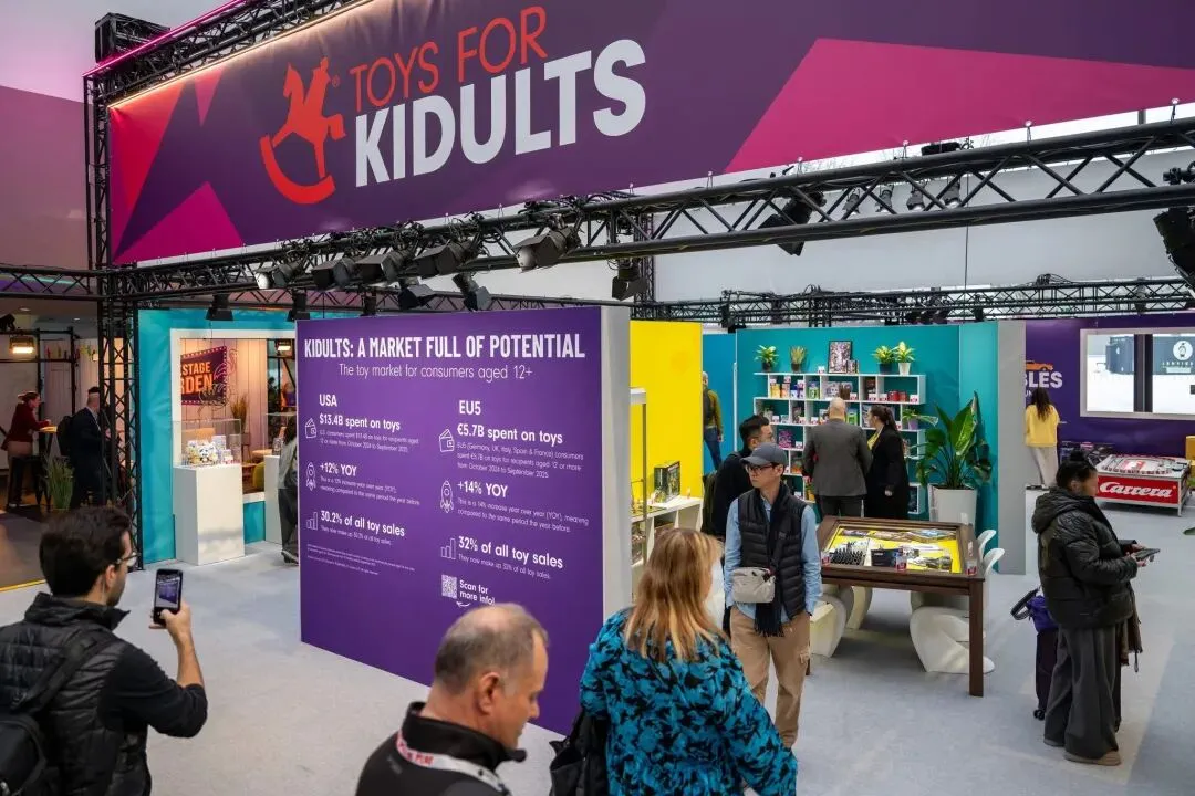 Toys for Kidults(成人玩具/大童玩具)区域人气爆棚,充分反映了成人收藏与怀旧玩乐市场的巨大潜力。根据市场研究公司Circana的数据,该领域在美国从2024年10月至2025年9月的支出预计达134亿美元(增长12%),在欧洲达57亿欧元(增长14%)。复古游戏机、经典街机重制、怀旧IP产品如漫威系列收藏品备受追捧,吸引了众多成年观众体验与洽谈。