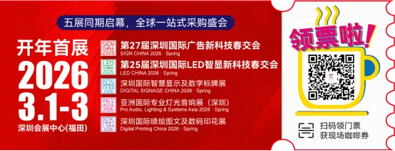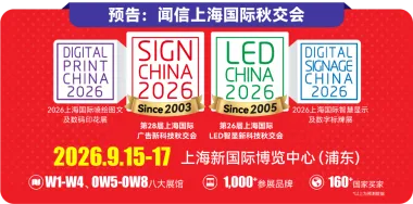 SIGN CHINA本次回归,不仅整合其独有的广告\喷印\LED\数字标识全产业链资源,更与姐妹品牌LED CHINA第25届深圳国际LED智显新科技春交会强强联手,为您全面打开广告行业数字化升级新机遇! 无论您是寻找商文体旅、零售美陈、展览展示、商业空间前沿创意解决方案,还是采购广告标识制作设备、智慧喷印技术、创新材料板材等核心资源,都无需东奔西跑,展会现场一站式满足供需对接!