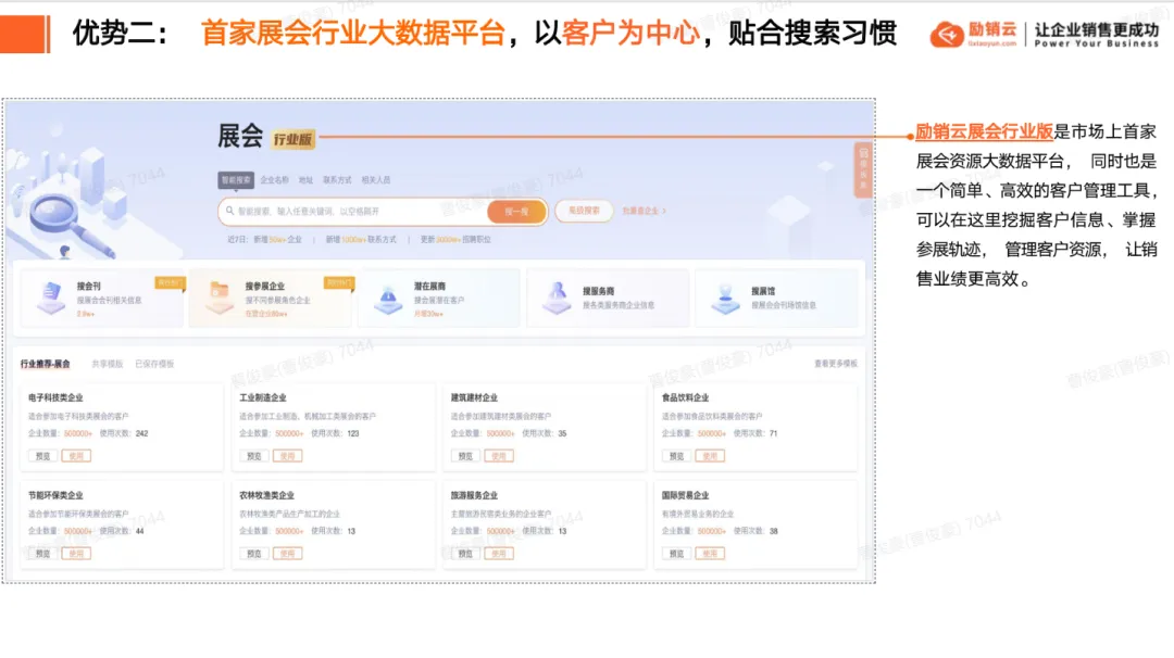 ?2. 量身定制5大搜索模式,贴合行业真实需求!励销云太懂我们了!!直接打造了【搜参展企业】【搜会刊】【搜服务商】【搜场馆】【搜行业客户】五大功能,简直是为会展人量身定制!??