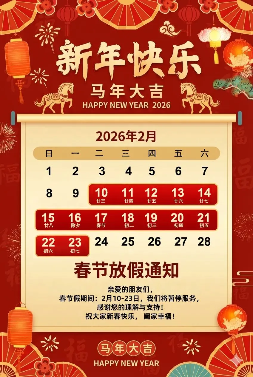 感谢您过去一年对我们的信任与支持。值此马年新春之际,祝愿您和团队: