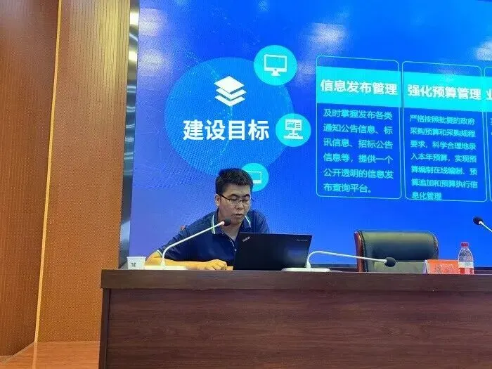 培训会现场,甘肃睿阳科技有限公司“清水县政府采购交易管理平台”项目负责人对平台功能、业务操作和常见问题等内容进行了操作上线培训。该平台将促进政府采购服务模式多元化发展,畅通服务渠道,提升政府服务能力和办事效率。