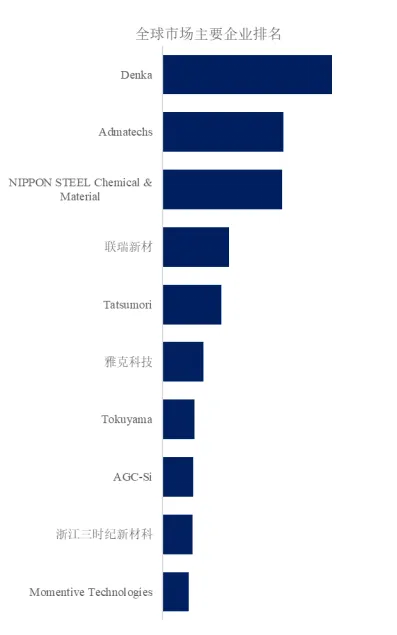 根据QYResearch头部企业研究中心调研,全球范围内球形二氧化硅生产商主要包括Denka、Admatechs、NIPPON STEEL Chemical & Material、联瑞新材、Tatsumori、雅克科技、Tokuyama、AGC-Si、浙江三时纪新材科、Momentive Technologies等。2025年,全球前十强厂商占有大约61.0%的市场份额。