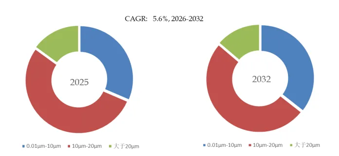 就产品类型而言,目前10μm-20μm是最主要的细分产品,占据大约53.6%的份额。