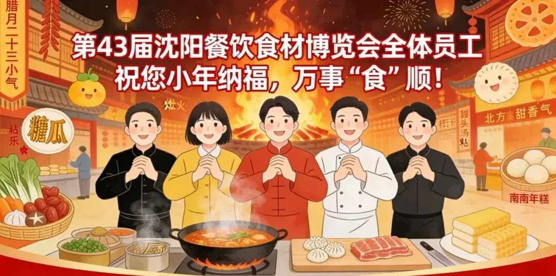 值此佳节,第43届沈阳餐饮食材博览会全体员工,向长期以来支持展会发展的参展商、合作伙伴,以及每一位热爱美食、坚守餐饮初心的朋友们,致以最诚挚的小年祝福!
