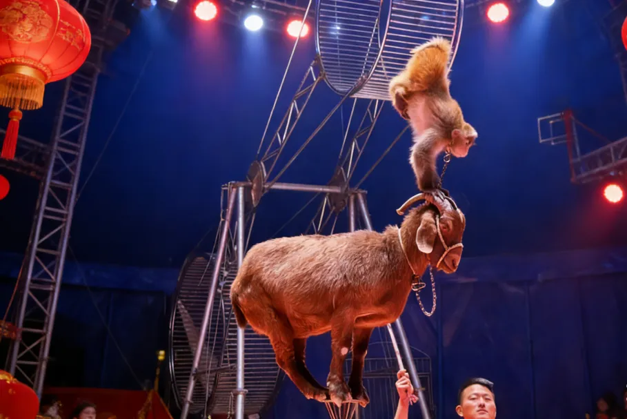 最最最精彩的马戏表演来啦!惊险刺激的杂技、憨态可掬的动物表演,让你仿佛置身于奇幻的世界。狮子、狗熊、猴子、山羊等动物明星们纷纷登场,展示它们的绝技。还有惊险的高空飞人、精彩的魔术表演,让你目不暇接,大呼过瘾。这可是难得一见的视觉盛宴,绝对让你值回票价。