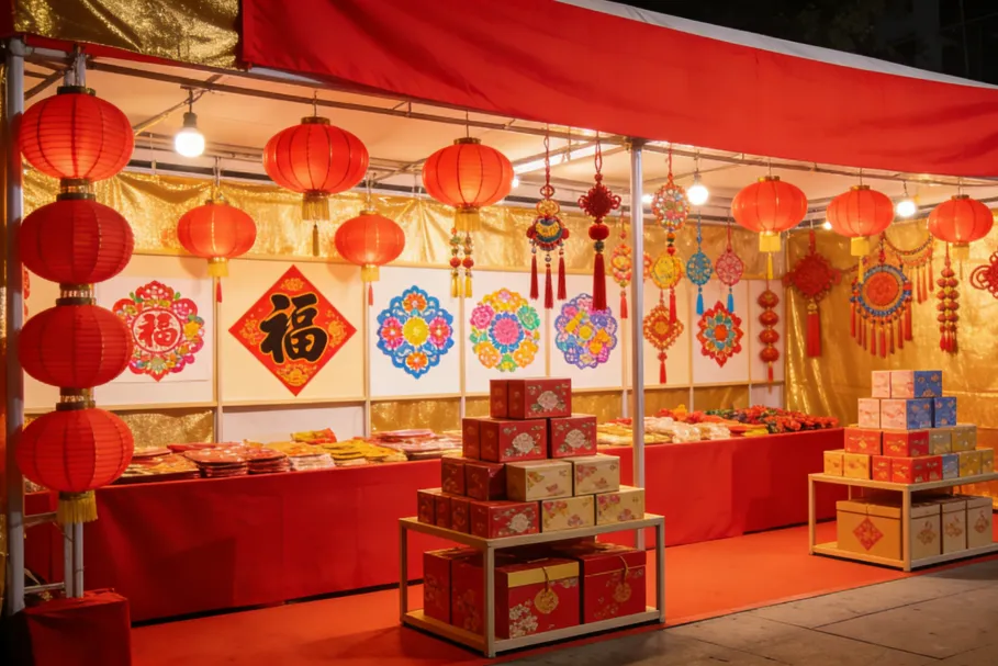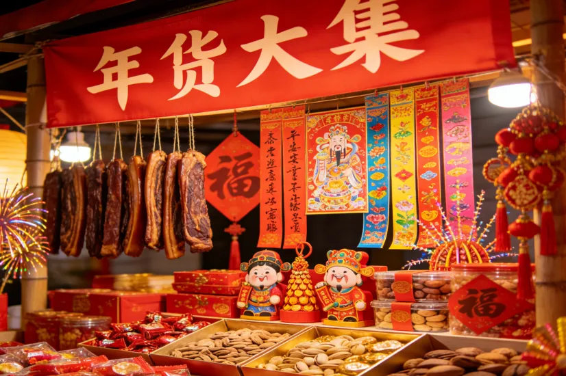 从红红火火的灯笼、福字,到精致喜庆的窗花、挂饰,每一件都散发着浓浓的年味。还有各种坚果、糖果、蜜饯,香甜的气味弥漫在空气中,让你的味蕾提前感受过年的甜蜜。