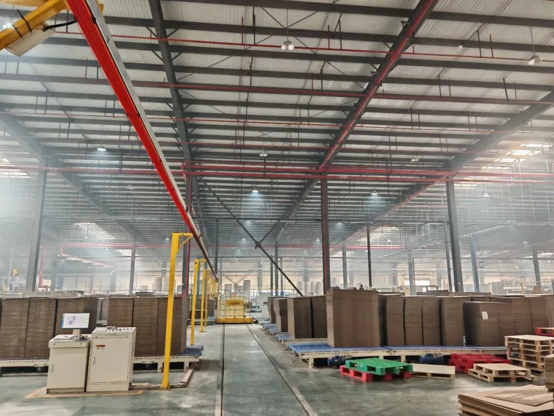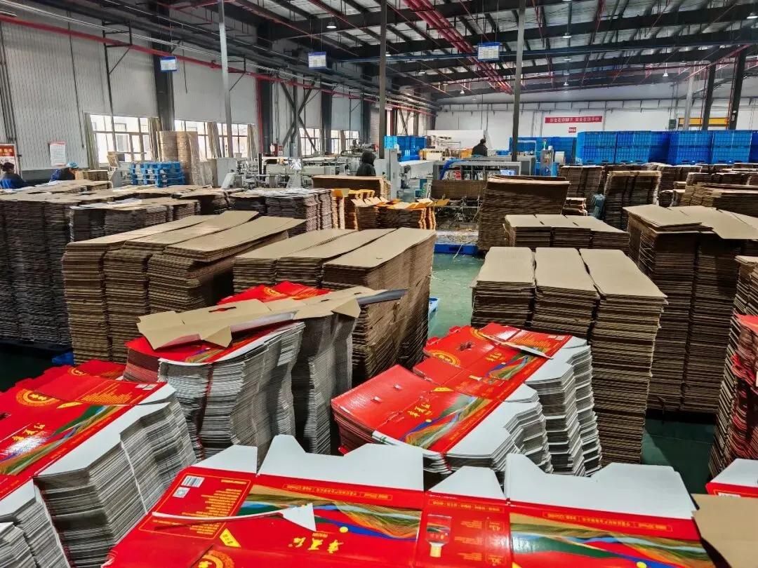 走进位于临港产业园的艺虹包装生产车间,机器运转的轰鸣声此起彼伏,印刷、覆膜、裱纸、模切、糊盒等一系列大型设备有序联动、全速运转,一张张卡纸经过多道工序的加工,快速变身成包装箱、包装盒,流水线末端的工人身着工装,有条不紊地进行分拣、打包、入库,每一个动作都娴熟利落,处处涌动着抢抓工期、冲刺目标的干劲。