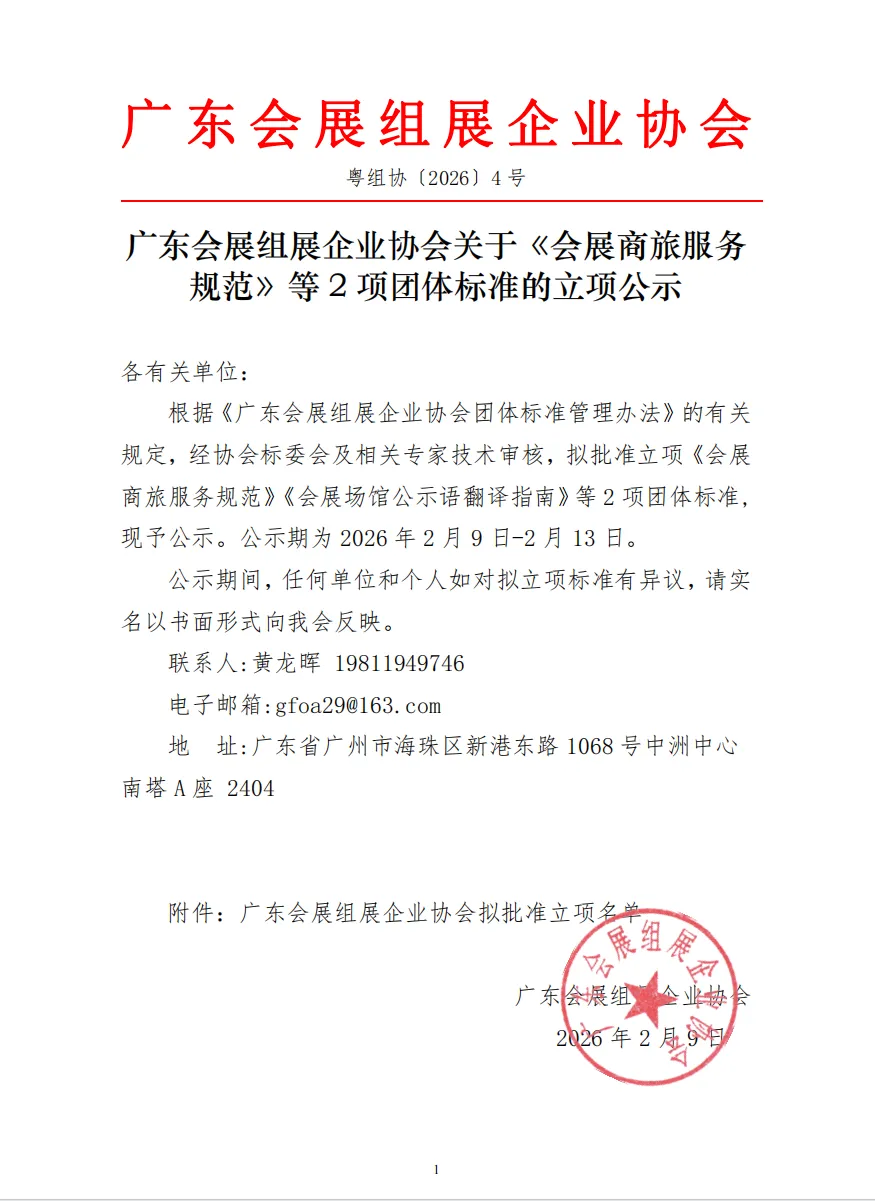 关于《会展商旅服务规范》等 2 项团体标准的立项公示