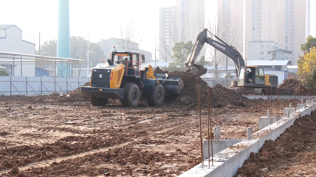 近日,在荆楚源油脂年加工5万吨山茶果智能化示范生产线建设项目现场,混凝土正通过输送泵车运送至办公区二楼进行浇筑,挖掘机、装载机穿梭作业有条不紊,现场一派热火朝天的景象。